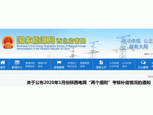 2020年1月份陜西電網(wǎng)“兩個細則”考核補償情況