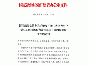 《浙江省電力用戶受電工程市場行為監(jiān)管辦法》等四項制度文件印發(fā)