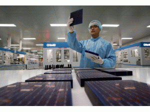 江西一家光伏公司員工正在檢測(cè)光伏電池片