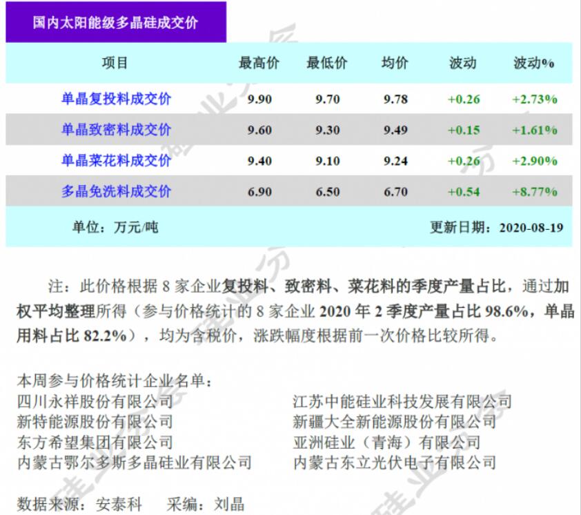 新疆地區(qū)多晶硅企業(yè)復(fù)產(chǎn)時間計劃在8月底到9月初,對8月份國內(nèi)多晶硅總供應(yīng)幾無新增貢獻(xiàn),增量集中在9月中旬以后。
