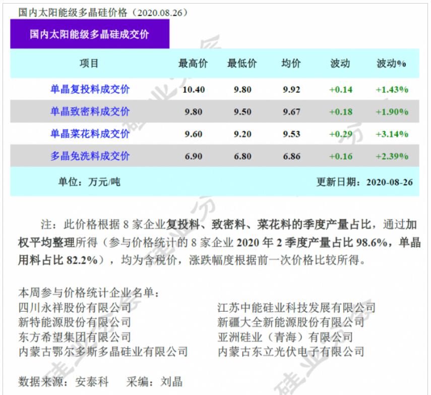 9月份根據(jù)各多晶硅企業(yè)復(fù)產(chǎn)計(jì)劃,預(yù)計(jì)月產(chǎn)量將環(huán)比增加,增幅在13%-18%,供應(yīng)短缺程度將有所緩解,市場(chǎng)價(jià)格漲幅也將相應(yīng)收窄。