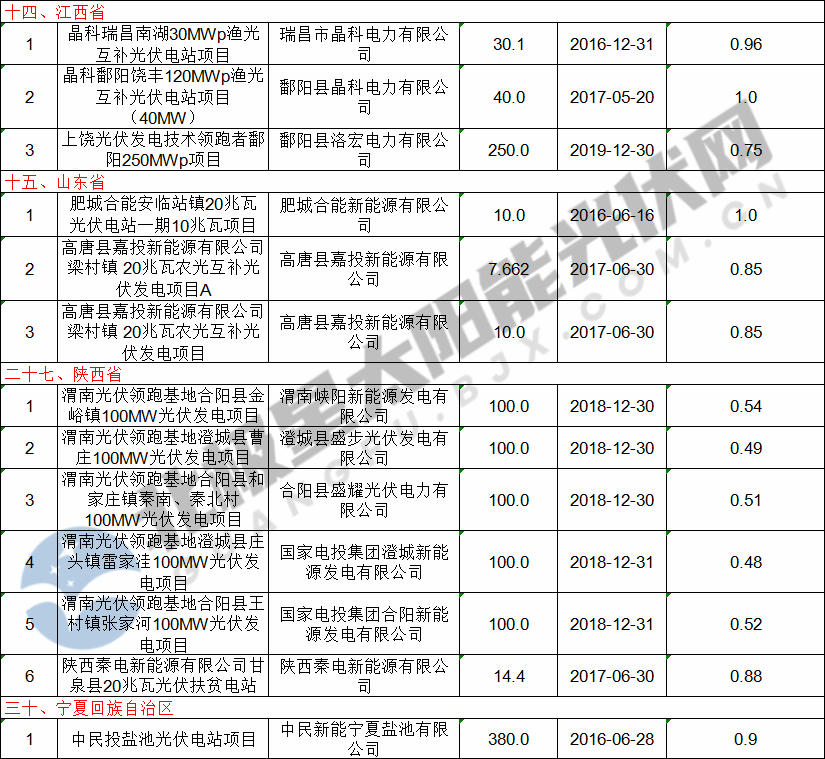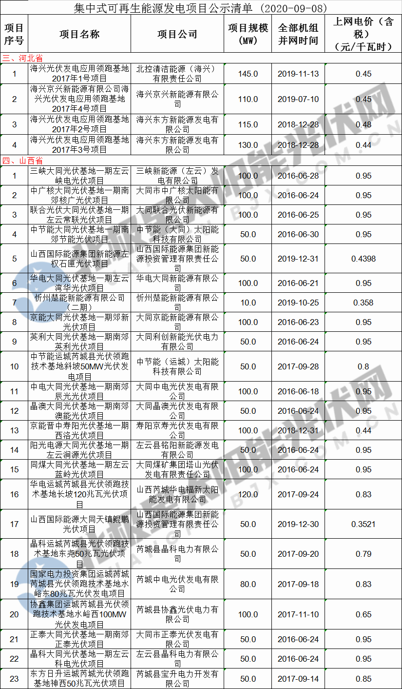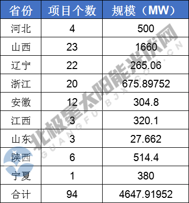 9月7日,國家電網(wǎng)公示了最新一批的可再生能源發(fā)電補(bǔ)貼項(xiàng)目清單,其中共涉及94個(gè)集中式光伏項(xiàng)目,總裝機(jī)容量達(dá)4647.91952MW,涵蓋河北、山西、遼寧、浙江、安徽、江西、山東、陜西、寧夏9個(gè)省份。