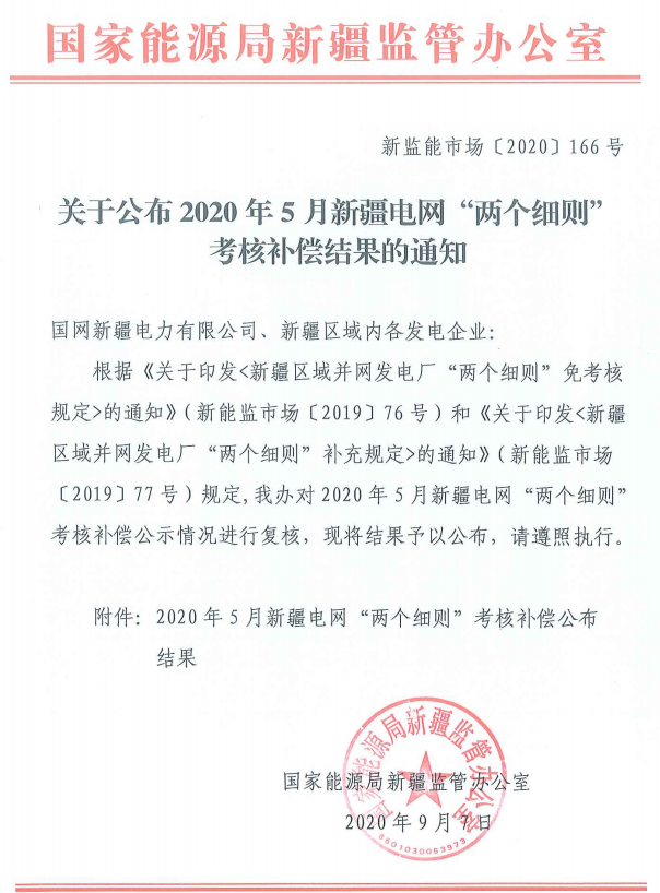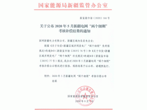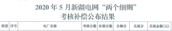 2020年5月新疆電網(wǎng)“兩個(gè)細(xì)則”考核和補(bǔ)償結(jié)果公布