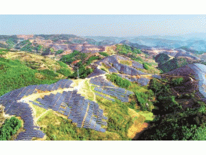 2015年,鄖西縣上津鎮(zhèn)石廟村西嶺,一片荒山“蓋”上了藍(lán)色光伏板,這是該縣第一個(gè)光伏扶貧項(xiàng)目。