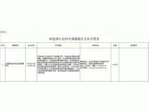 根據(jù)新能源行業(yè)重大問題研究工作需要,按照國家能源局有關(guān)規(guī)定,現(xiàn)將國家能源局新能源行業(yè)研究課題招標(biāo)有關(guān)事項公告如下: