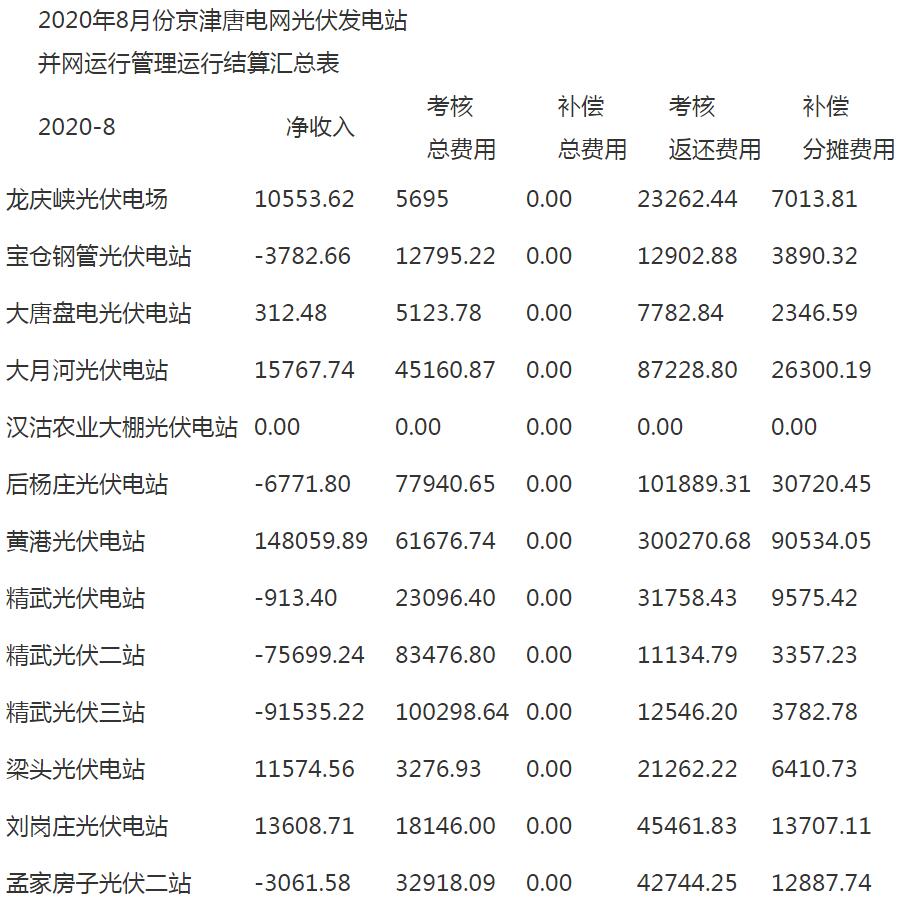 3. 2020年8月份京津唐電網(wǎng)光伏發(fā)電站并網(wǎng)運(yùn)行管理運(yùn)行結(jié)算匯總表