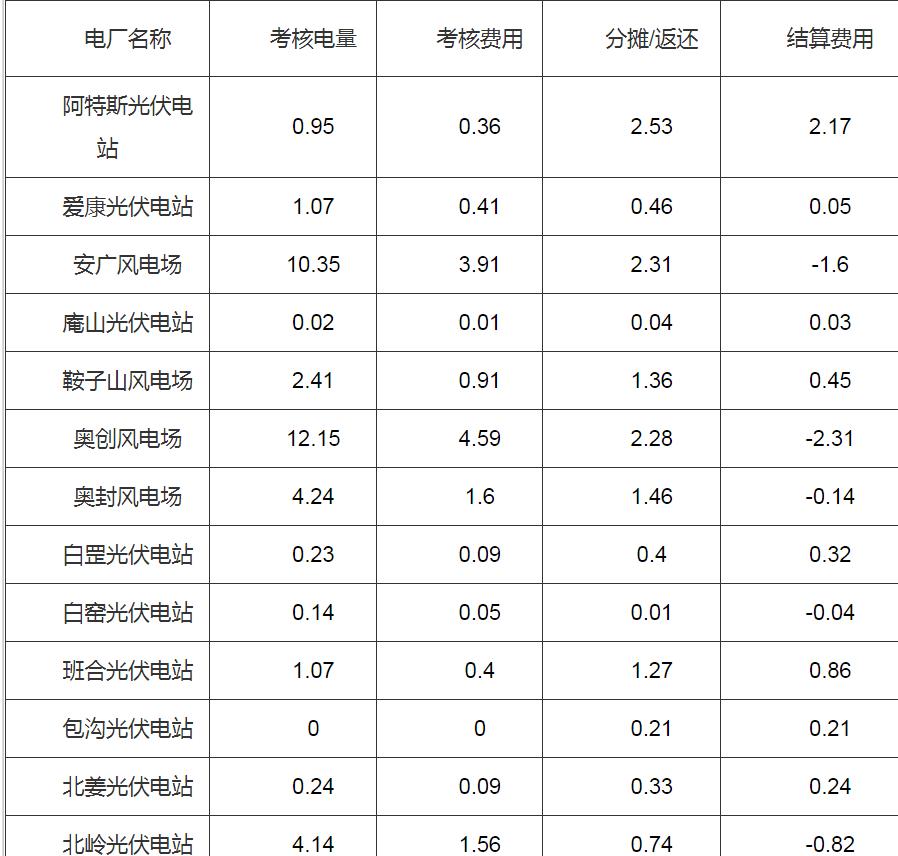 2020年8月份河南省“新能源電廠并網(wǎng)運行管理”結(jié)算情況