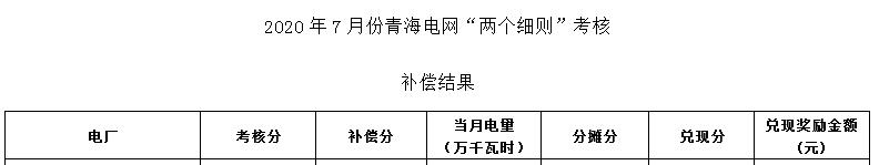 附件:2020年7月份青海電網(wǎng)“兩個細(xì)則”考核補(bǔ)償 結(jié)果