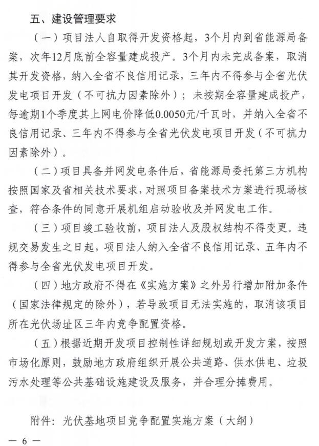 同時(shí),明確規(guī)定,2020年度光伏發(fā)電競(jìng)爭(zhēng)配置項(xiàng)目須納入光伏基地規(guī)劃,并在有電網(wǎng)送出條件的光伏場(chǎng)址區(qū)內(nèi),原則上單個(gè)標(biāo)的項(xiàng)目建設(shè)規(guī)模不得低于10萬(wàn)千瓦。