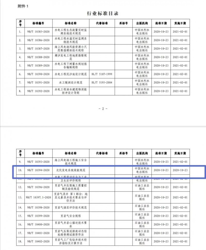 業(yè)內(nèi)消息,10月23日,國(guó)家能源局批準(zhǔn)《水電工程生態(tài)流量實(shí)時(shí)監(jiān)測(cè)系統(tǒng)技術(shù)規(guī)范》等502項(xiàng)能源行業(yè)標(biāo)準(zhǔn)正式下發(fā),上述標(biāo)準(zhǔn)自文件下發(fā)之日起執(zhí)行。值得注意的是,該標(biāo)準(zhǔn)包含由水電總院組織編制的《光伏發(fā)電系統(tǒng)效能規(guī)范》(以下簡(jiǎn)稱(chēng)《規(guī)范》)。據(jù)了解,《規(guī)范》中提出了一系列效能參數(shù),主要包括:關(guān)鍵設(shè)備參數(shù)(組件效率、雙面