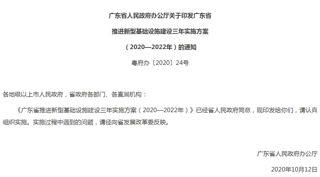 日前,廣東省人民政府辦公廳印發(fā)《廣東省推進(jìn)新型基礎(chǔ)設(shè)施建設(shè)三年實(shí)施方案(2020—2022年)》。
