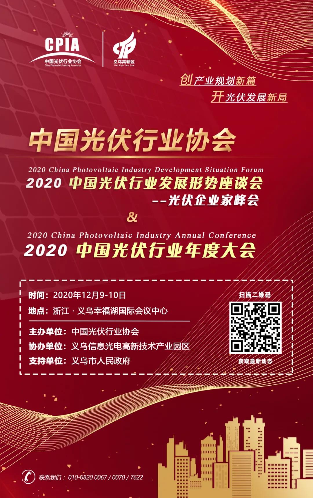 為更好探討新階段、新形勢(shì)下我國(guó)未來光伏行業(yè)發(fā)展方向與路徑,促進(jìn)行業(yè)交流與溝通,中國(guó)光伏行業(yè)協(xié)會(huì)于12月9-10日召開“2020中國(guó)光伏行業(yè)年度大會(huì)”,邀請(qǐng)行業(yè)主管部門、行業(yè)組織、行業(yè)專家、光伏企業(yè)領(lǐng)袖等代表一起就行業(yè)發(fā)展熱點(diǎn)問題進(jìn)行探討分析。