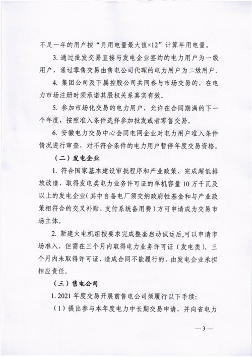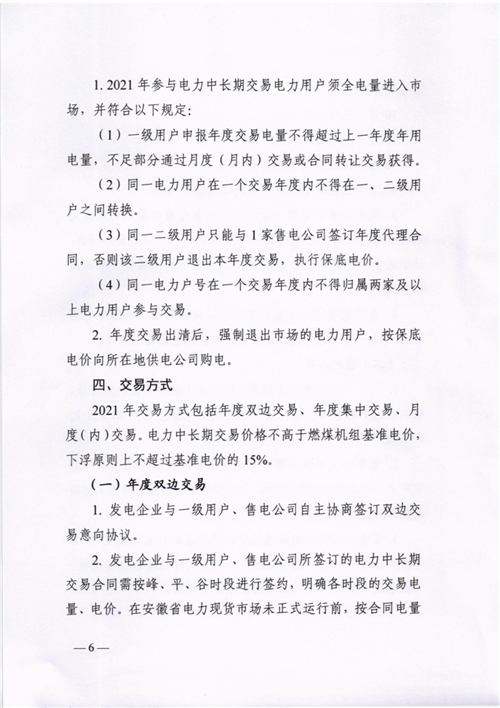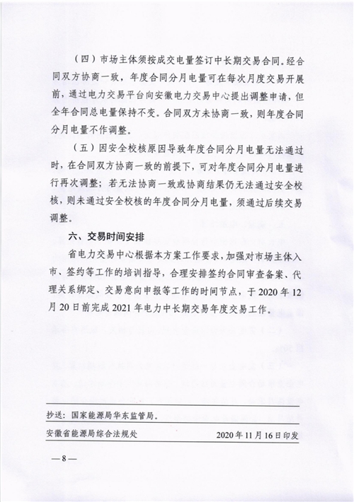 日前,安徽省能源局印發(fā)關(guān)于2021年全省電力中長(zhǎng)期交易實(shí)施方案的通知,方案中指出:市場(chǎng)交易規(guī)模:2021年全省電力中長(zhǎng)期交易規(guī)模不設(shè)上限。交易時(shí)間安排:2020年12月20日前完成2021年電力中長(zhǎng)期交易年度交易工作。具體如下: