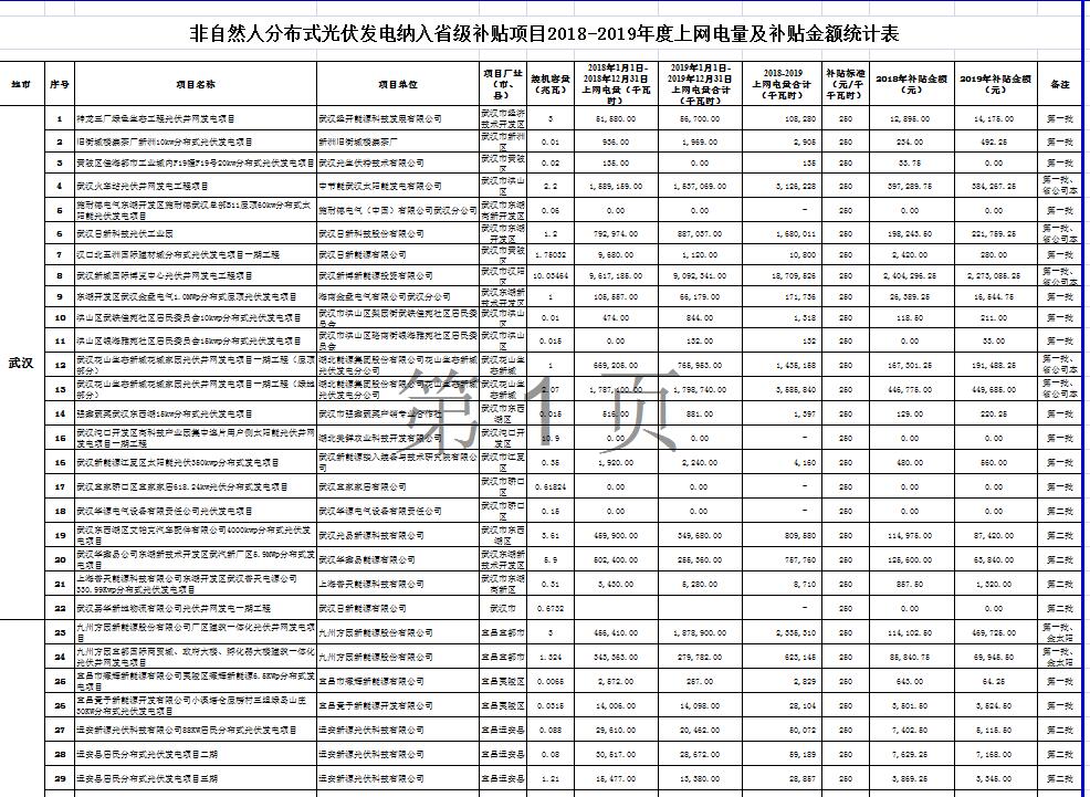 公示明確:根據(jù)《省物價(jià)局省能源局關(guān)于對(duì)新能源發(fā)電項(xiàng)目實(shí)行電價(jià)補(bǔ)貼有關(guān)問題的通知》(鄂價(jià)環(huán)資〔2015〕90號(hào))規(guī)定,結(jié)合我省新能源發(fā)電項(xiàng)目省級(jí)電價(jià)補(bǔ)貼資金籌集情況,我委組織國網(wǎng)湖北省電力公司對(duì)符合條件的新能源發(fā)電項(xiàng)目2018—2019年期間上網(wǎng)電量和電價(jià)補(bǔ)貼進(jìn)行了統(tǒng)計(jì)。初步認(rèn)定2018-2019年補(bǔ)貼資金共計(jì)64633.45萬元,其中集中式光伏電站21個(gè),補(bǔ)貼金額20555.65萬元;風(fēng)電項(xiàng)目33個(gè),補(bǔ)貼金額40049.96萬元;沼氣發(fā)電項(xiàng)目3個(gè),補(bǔ)貼金額0.0755萬元;非自然人分布式光伏發(fā)電項(xiàng)目298個(gè),補(bǔ)貼金額3764.78萬元;自然人分布式光伏發(fā)電項(xiàng)目586個(gè),補(bǔ)貼金額267.28萬元。