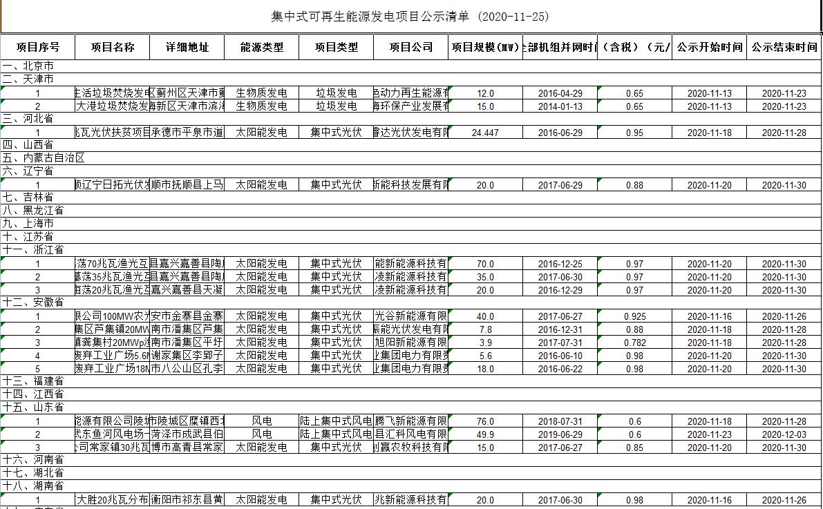 今日(11月25日),國家電網(wǎng)發(fā)布新一批集中式可再生能源發(fā)電項(xiàng)目公示清單,共計(jì)50個(gè)。
