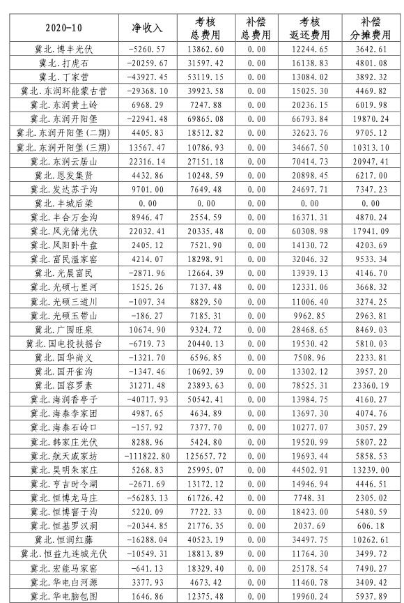 請華北電網(wǎng)有限公司和國網(wǎng)北京市、天津市、冀北電力有限公司據(jù)此文件,及時結(jié)算各發(fā)電企業(yè)2020年10月份“兩個細則”費用。