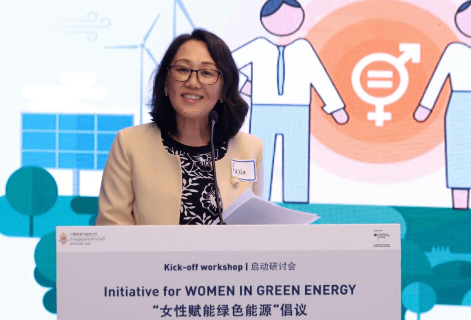德國國際合作機(jī)構(gòu)(GIZ)中德能源與能效合作伙伴項(xiàng)目主任尹玉霞在會上介紹“女性賦能綠色能源”倡議,圖片來源:GIZ