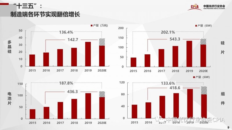 12月10舉辦的“2020年中國光伏行業(yè)協(xié)會年度大會”上,中國光伏行協(xié)會副理事長兼秘書長王勃華作光伏行業(yè)“十三五”發(fā)展回顧與“十四五”形勢展望的報告。