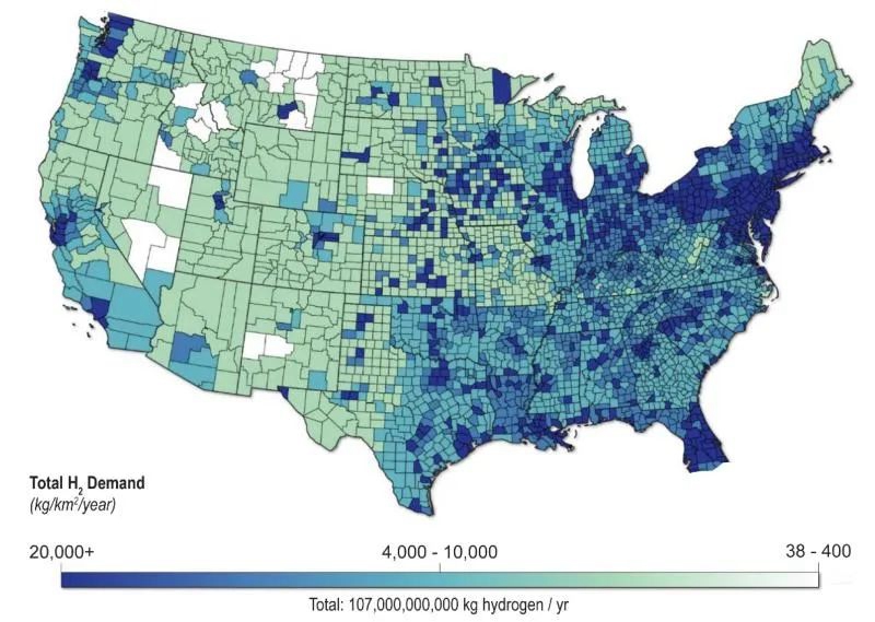 《計(jì)劃》指出,美國政府致力于氫能全產(chǎn)業(yè)鏈的技術(shù)研發(fā),并將加大示范和部署力度,以期實(shí)現(xiàn)產(chǎn)業(yè)規(guī);。根據(jù)美國國家實(shí)驗(yàn)室預(yù)測,到2050年,美國本土氫能需求將增至4100萬噸/年,占未來能源消費(fèi)總量的14%。
