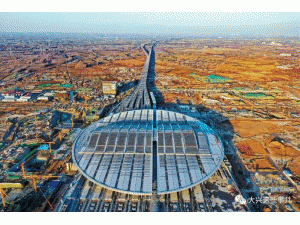 據(jù)了解,由中鐵建工集團、中鐵十二局、中建三局承建的雄安站于2018年12月1日開工建設(shè),是京雄城際鐵路規(guī)模最大的新建車站。該站屋頂拉開的縫隙形成了極具特色的“光廊”!肮饫取睂④囌咎烊粍澐譃闁|西兩個區(qū)域,其中西區(qū)為京雄車場,東區(qū)為預(yù)留的津雄車場。