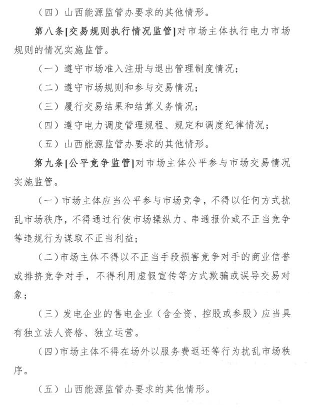 《山西電力市場(chǎng)監(jiān)管實(shí)施辦法(試行)》全文如下: