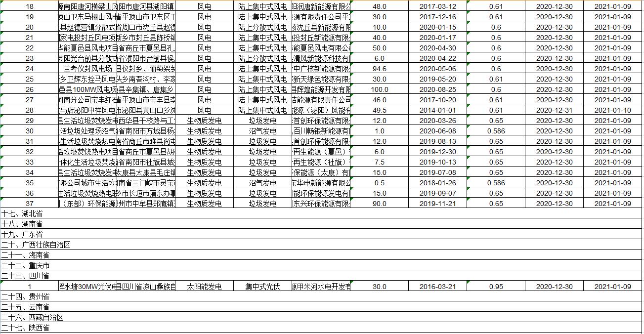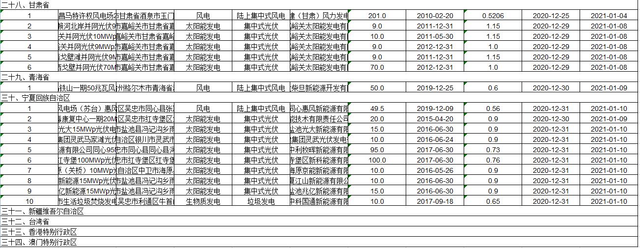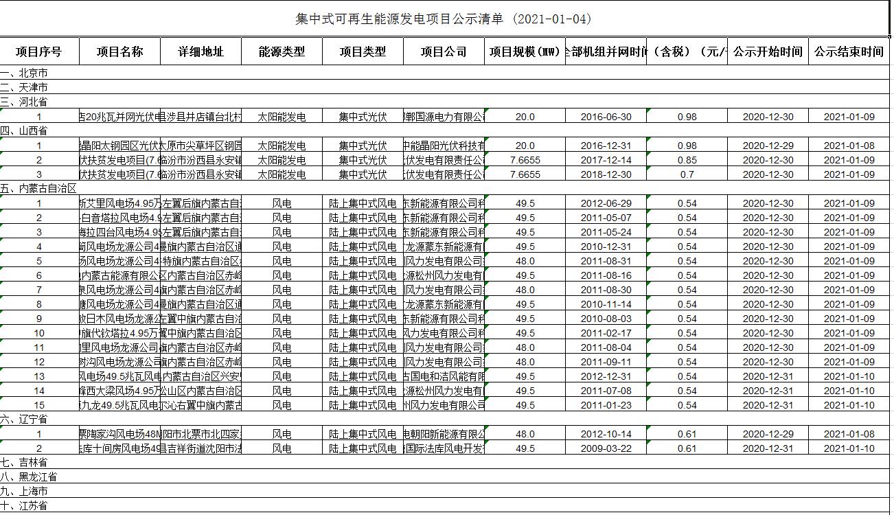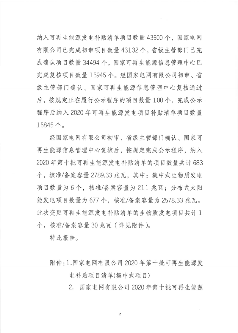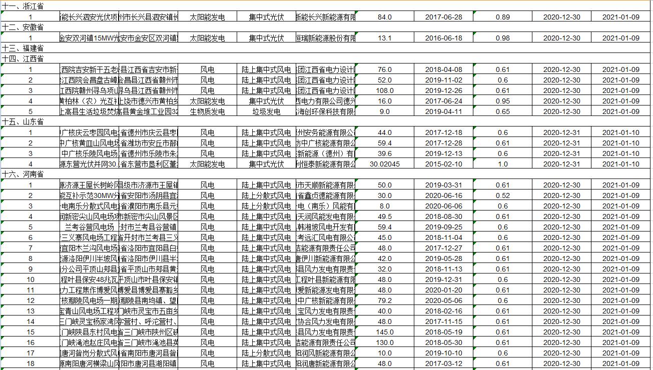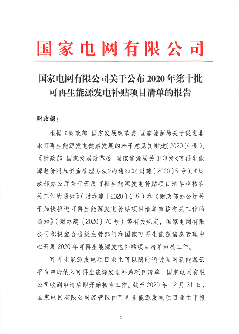 2021年1月4日,國(guó)家電網(wǎng)公布2020年第十批可再生能源發(fā)電補(bǔ)貼項(xiàng)目清單。