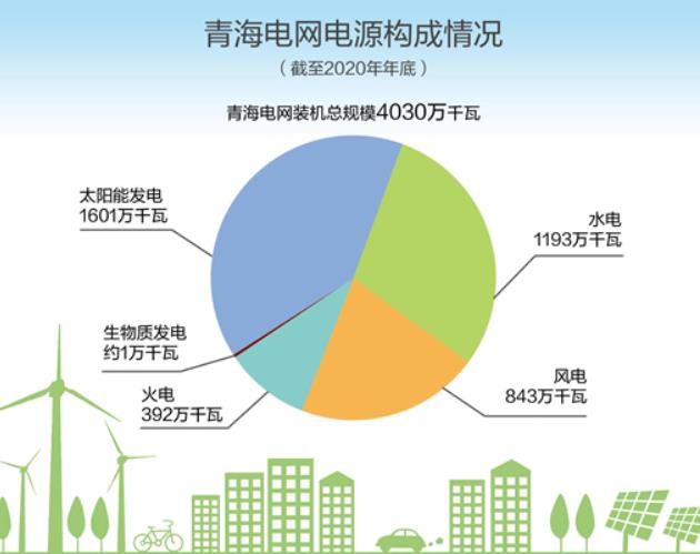 據(jù)最新統(tǒng)計,截至2020年底,青海電網(wǎng)裝機總規(guī)模達(dá)到4030萬千瓦,其中清潔能源裝機達(dá)3638萬千瓦,占比超全網(wǎng)裝機總規(guī)模的九成。清潔能源裝機中,太陽能發(fā)電、風(fēng)電、生物質(zhì)發(fā)電等新能源裝機共2445萬千瓦,占比60.7%;水電裝機1193萬千瓦。太陽能發(fā)電中,光伏裝機1580萬千瓦,超過水電成為全省第一大電源。