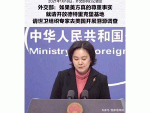 外交部再上熱搜!1月18日,在外交部例行記者會(huì)上,外交部發(fā)言人做出這樣的表述:如果美方真的尊重事實(shí),就請(qǐng)開放德特里克堡基地,請(qǐng)世衛(wèi)組織專家去美國開展溯源調(diào)查。