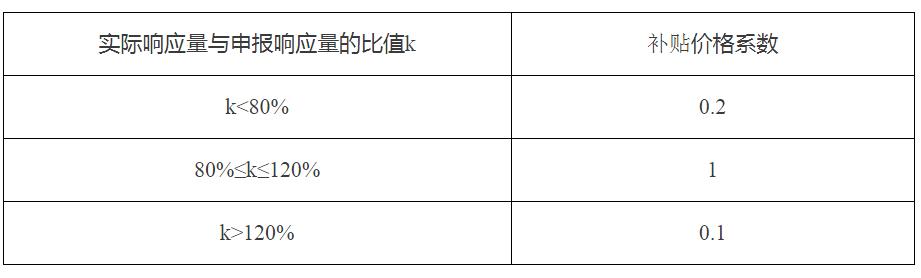 2.對于不同完成情況的電力用戶、負(fù)荷集成商將在補貼價格基礎(chǔ)上乘以補貼價格系數(shù):若日實際響應(yīng)量低于日申報響應(yīng)量的80%,按照補貼價格的20%進行補貼;若日實際響應(yīng)量在日申報響應(yīng)量的80%至120%,按照補貼價格進行補貼;若日實際響應(yīng)量高于日申報響應(yīng)量的120%,高出日申報響應(yīng)量120%的部分按照補貼價格的10%進行補貼。