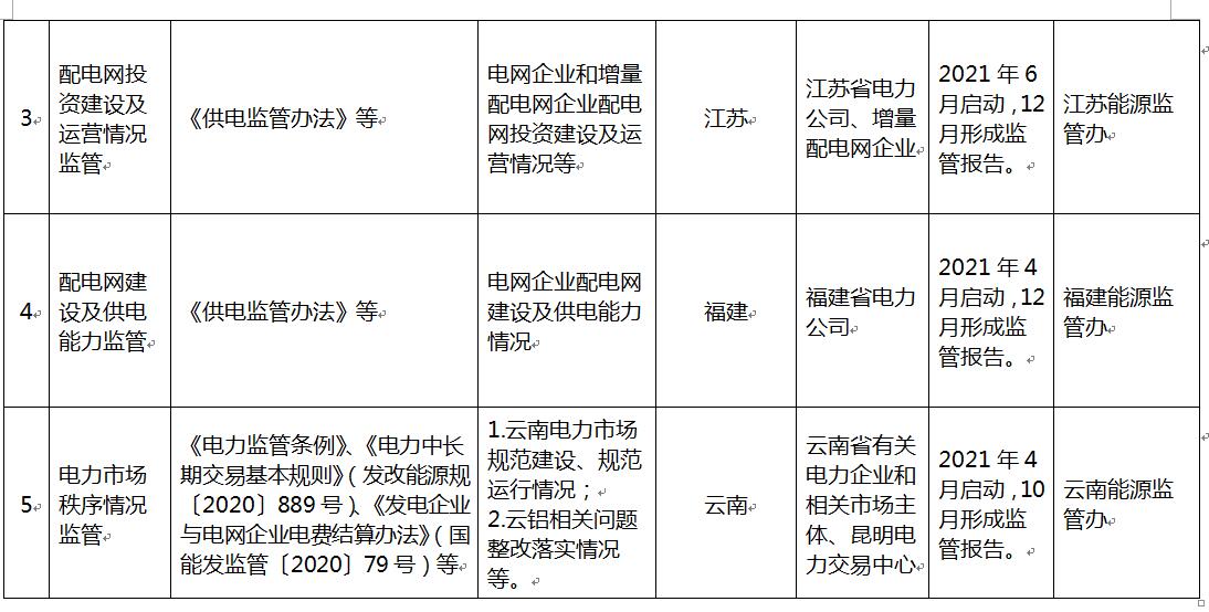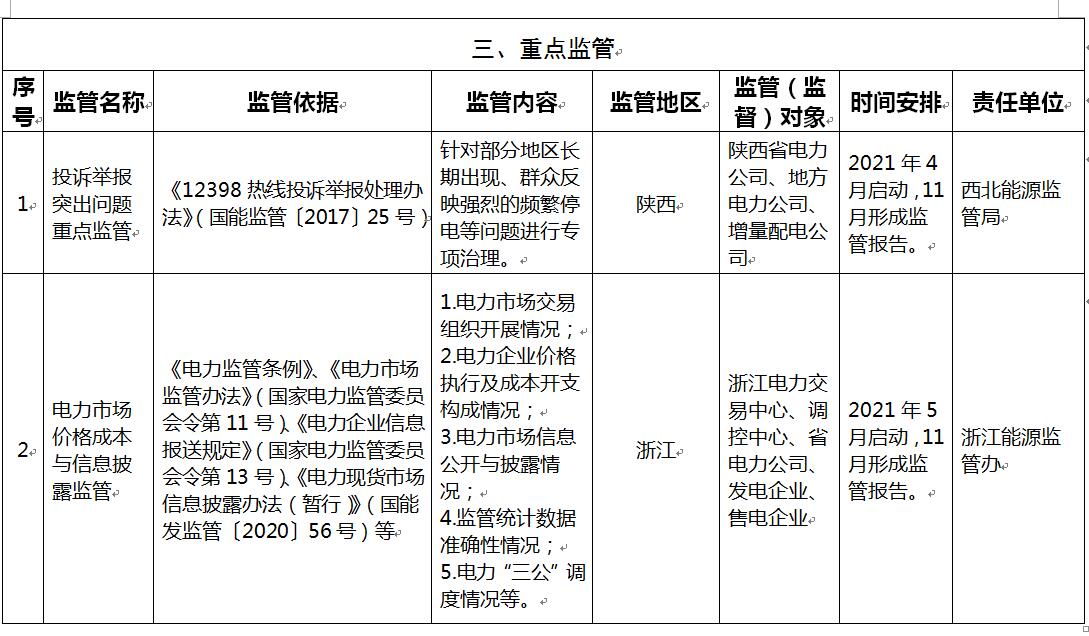 國家能源局關于印發(fā)《2021年能源監(jiān)管重點任務清單》的通知