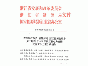 為深入推進電力體制改革,有效降低企業(yè)用電成本,做好2021年全市電力用戶申報電力直接交易相關(guān)工作,浙江發(fā)展和改革委員會等部門印發(fā)2021年浙江省電力直接交易工作方案,全文如下: