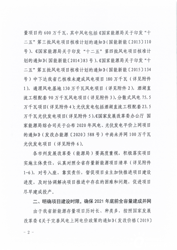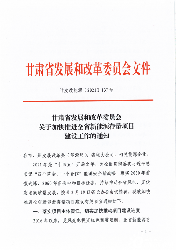 日前,甘肅省發(fā)改委發(fā)布《關(guān)于加快推進全省新能源存量項目建設(shè)工作》的通知,要求明確項目建設(shè)時限,確保2021年底前全容量建成并網(wǎng)。