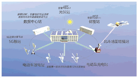 據(jù)了解,濱州郭集變電站在辦公區(qū)屋頂、車位頂部空間安裝光伏板,建成裝機容量485千瓦的分布式光伏電站。該電站年均發(fā)電量42萬千瓦時,光伏產(chǎn)生的綠色電能可滿足辦公樓日常辦公、電動汽車充電使用。同時,率先建成國內(nèi)首家含光伏發(fā)電、儲能、能量管理、汽車充放電、配電等多維融合“智慧微電網(wǎng)”,白天采用光伏發(fā)電作為電源,對儲能系統(tǒng)進行充電;晚間光伏不足以供電時,儲能系統(tǒng)便作為電源供電。特別是在迎峰度夏、度冬期間,一旦出現(xiàn)臨時性負荷短缺,郭集微電網(wǎng)儲能站便可迅速通過220千伏郭集變電站向濱州電網(wǎng)供電應(yīng)急。