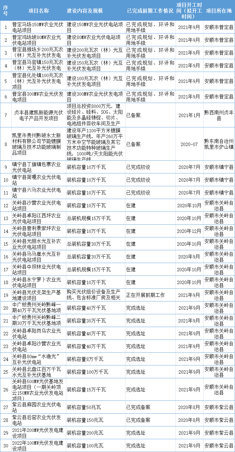 2021年2000個重點(diǎn)民間投資項(xiàng)目涉及光伏項(xiàng)目30個,名單如下: