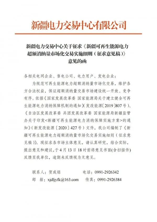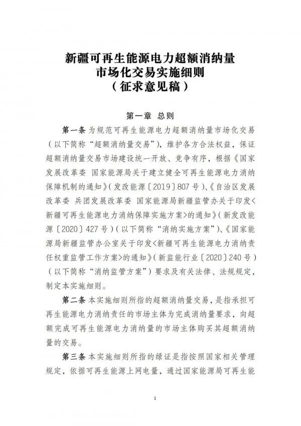 日前,新疆電力交易中心印發(fā)關(guān)于征求《新疆可再生能源電力超額消納量市場化交易實(shí)施細(xì)則(征求意見稿)》,全文如下: