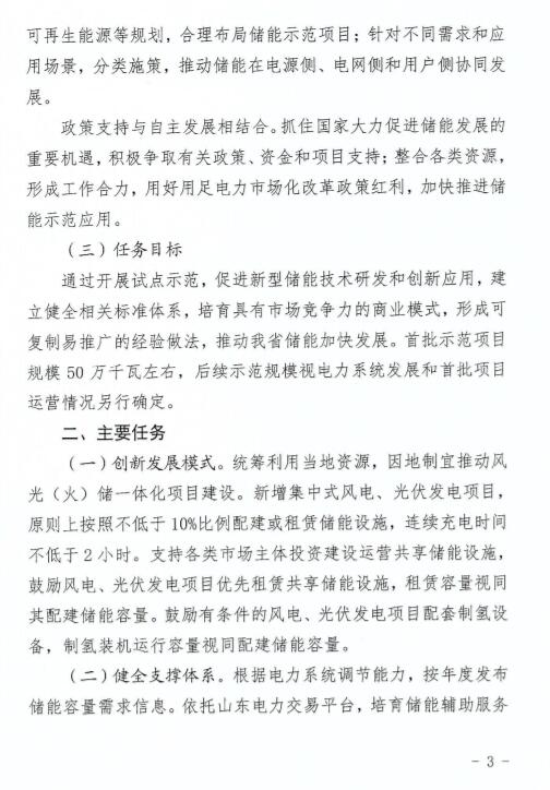 從山東省能源局獲悉,近日,山東省發(fā)展和改革委員會(huì)、山東省能源局 、國(guó)家能源局山東監(jiān)管辦公室聯(lián)合印發(fā) 《關(guān)于開(kāi)展儲(chǔ)能示范應(yīng)用的實(shí)施意見(jiàn)》的通知,(以下簡(jiǎn)稱《意見(jiàn)》),提出實(shí)施調(diào)峰調(diào)頻優(yōu)先發(fā)電量計(jì)劃獎(jiǎng)勵(lì)、儲(chǔ)能優(yōu)先、充放電量“平進(jìn)平出”、儲(chǔ)能多勞多得等支持政策。風(fēng)電光伏項(xiàng)目配建或租賃儲(chǔ)能的,優(yōu)先并網(wǎng)、優(yōu)先消納。著力推動(dòng)大規(guī)模新型儲(chǔ)能設(shè)施和風(fēng)光(火)儲(chǔ)一體化項(xiàng)目建設(shè),全力打造儲(chǔ)能示范應(yīng)用新樣板。
