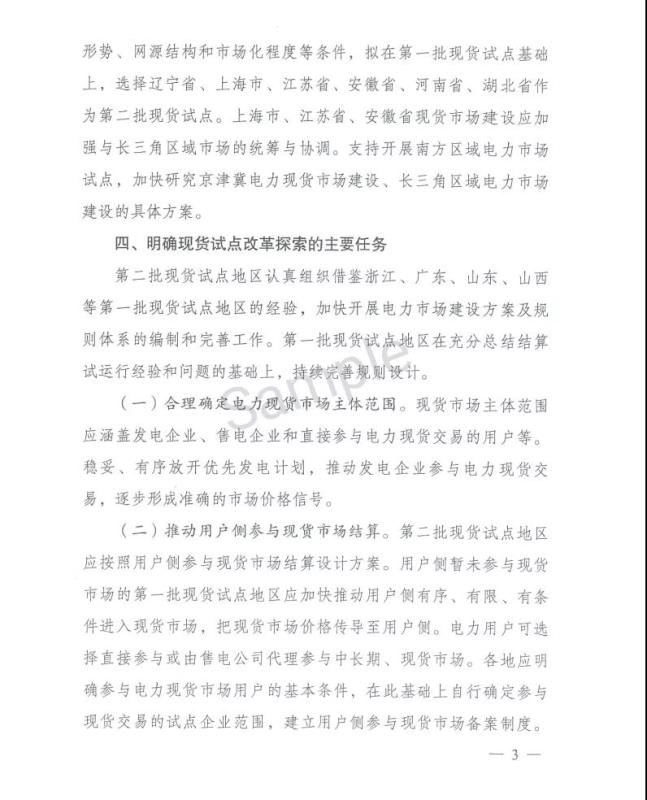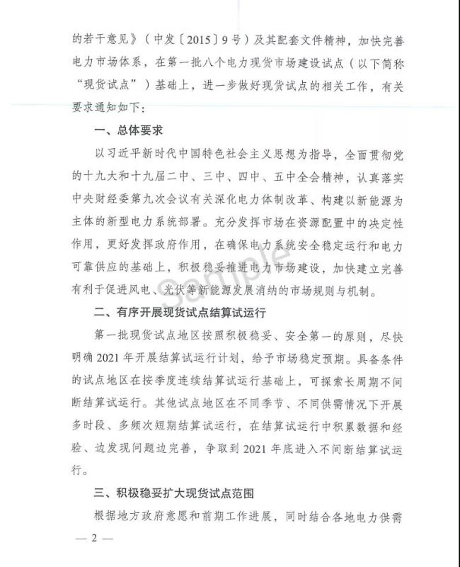 4月28日,國家發(fā)改委和國家能源局聯(lián)合印發(fā)《關(guān)于進一步做好電力現(xiàn)貨市場試點工作的通知》(以下簡稱《通知》)!锻ㄖ访鞔_了電力現(xiàn)貨試點范圍擴大,擬選擇上海、江蘇、安徽、遼寧、河南、湖北等6省市為第二批電力現(xiàn)貨試點!锻ㄖ芬蟮谝慌圏c區(qū)域按照積極穩(wěn)妥、安全第一的原則,盡快明確2021年試運行計劃,