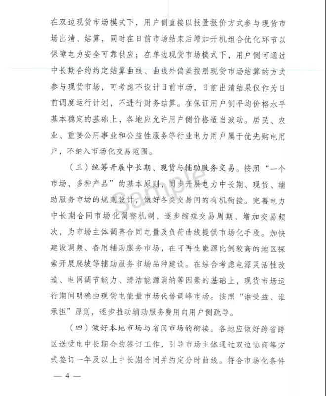 《通知》還明確了電力現(xiàn)貨試點改革探索的主要任務(wù),包括:合理確定市場主體范圍;推動用戶側(cè)參與市場結(jié)算;統(tǒng)籌開展中長期、現(xiàn)貨、輔助服務(wù);做好本地市場與省間市場銜接;推動新能源參與市場;探索容量成本回收機制;建立合理的費用疏導(dǎo)機制。