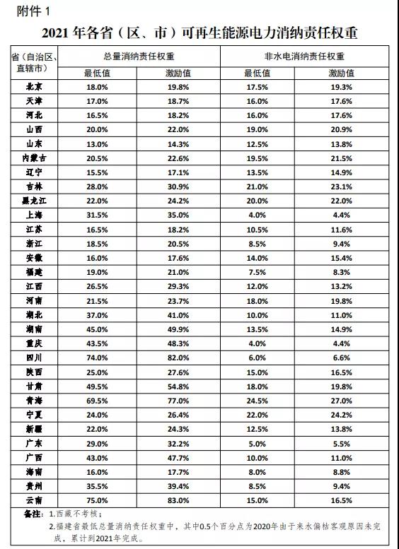 附件:1.2021年各。▍^(qū)、市)可再生能源電力消納責任權(quán)重