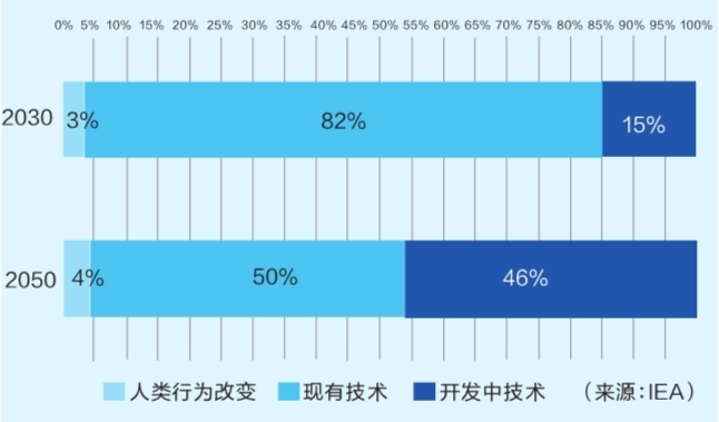 “到2030年以前,全球碳減排可來自于現(xiàn)有技術(shù)。但在2030—2050年間,幾乎一半的減排來自于目前處于演示或原型階段的技術(shù)。在重工業(yè)和長途運輸方面,目前仍在開發(fā)的技術(shù)所產(chǎn)生的減排份額甚至更高!眻蟾娣Q。