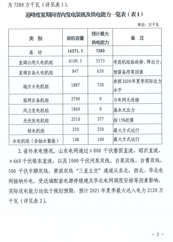據(jù)山東省能源局消息:為做好今年電力迎峰度夏工作,保障全省電網(wǎng)平穩(wěn)運(yùn)行和電力可靠供應(yīng),山東省能源局制定印發(fā)《2021年全省電力迎峰度夏預(yù)案》。根據(jù)《預(yù)案》,山東省夏季用電高峰存在供電缺口,省外來(lái)電穩(wěn)定輸入存在不確定性,電網(wǎng)穩(wěn)定運(yùn)行壓力較大,各地要提前籌劃,明確責(zé)任,強(qiáng)化落實(shí),確保電力穩(wěn)定可靠供應(yīng)。