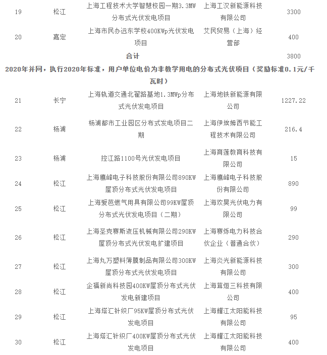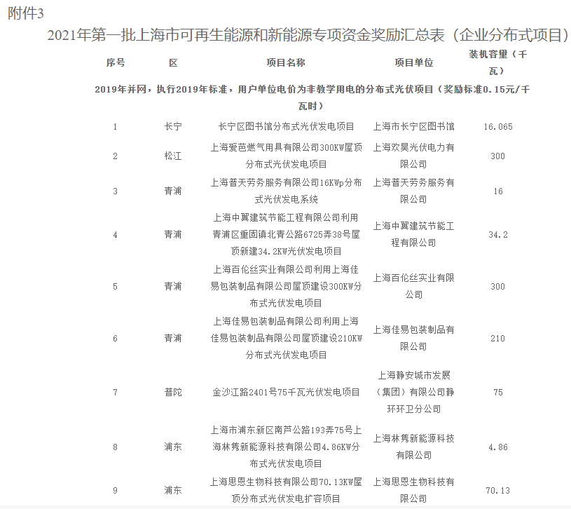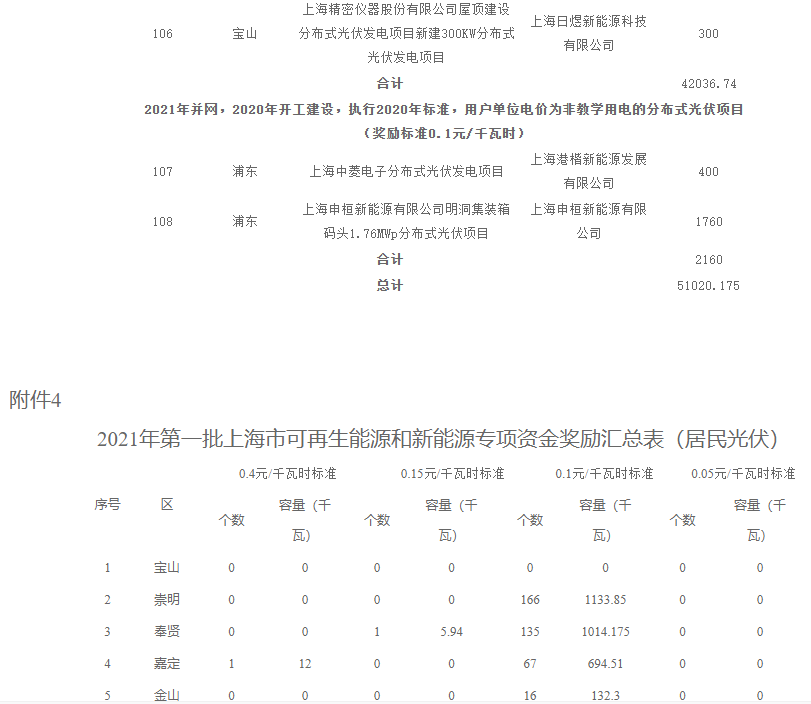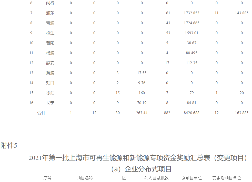 4.2021年第一批上海市可再生能源和新能源專項資金獎勵匯總表(居民光伏)5.2021年第一批上海市可再生能源和新能源專項資金獎勵匯總表(變更項目)