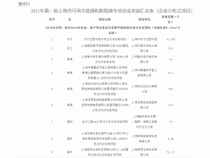 月4日,上海發(fā)改委發(fā)布上海市2021年度第一批可再生能源和新能源發(fā)展專項資金獎勵目錄(草案)公示。
