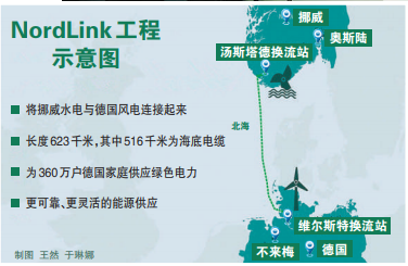 據(jù)了解,NordLink互聯(lián)工程是德國(guó)和挪威之間第一條直流輸電系統(tǒng),從挪威的湯斯塔德到德國(guó)的維爾斯特,全長(zhǎng)623千米,輸電系統(tǒng)采用高壓直流技術(shù),最大容量1400兆瓦。