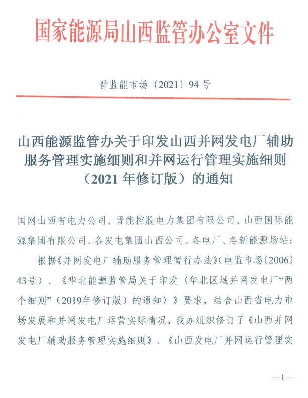 今日,山西能源監(jiān)管辦印發(fā)山西并網(wǎng)發(fā)電廠輔助服務(wù)管理實(shí)施細(xì)則和并網(wǎng)運(yùn)行管理實(shí)施細(xì)則(2021年修訂版)的通知。通知表示,《山西光伏發(fā)電站并網(wǎng)運(yùn)行管理實(shí)施細(xì)則》自7月1日起施行,原細(xì)則及補(bǔ)充修訂條款同時(shí)廢止。通知及《山西光伏發(fā)電站并網(wǎng)運(yùn)行管理實(shí)施細(xì)則》全文如下: