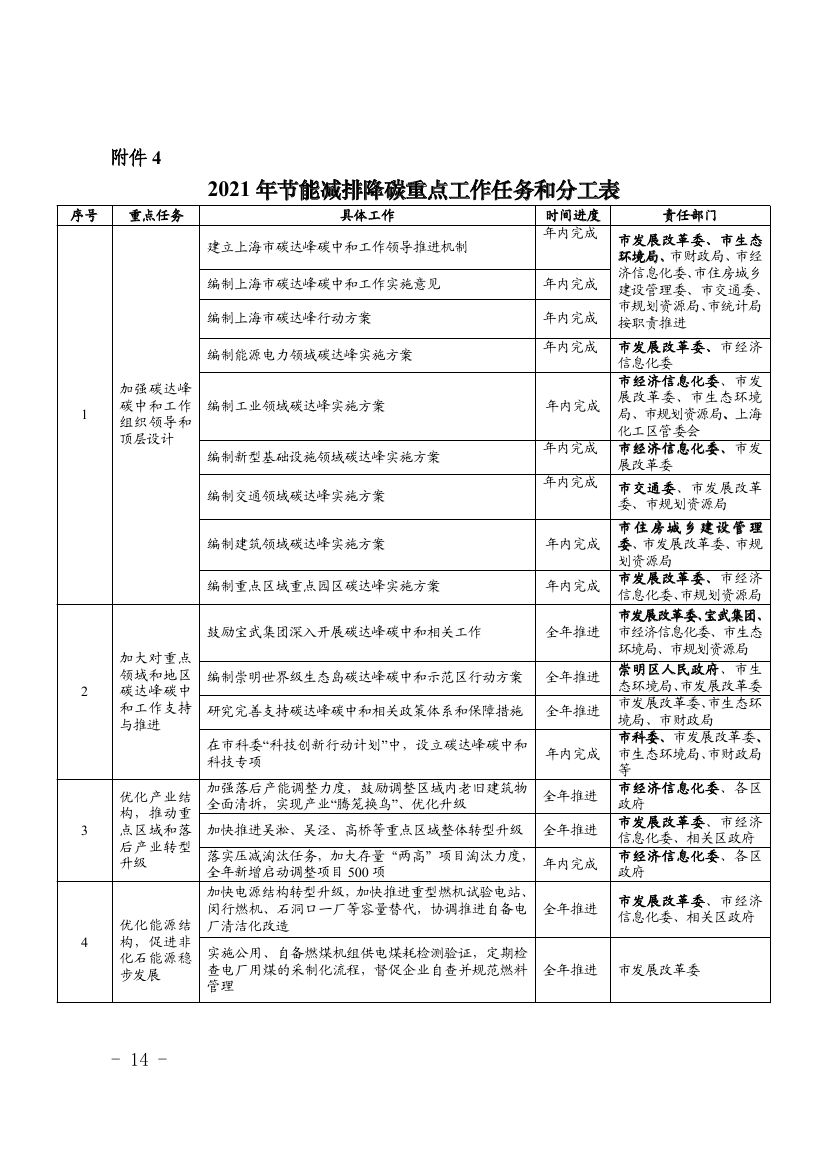 《工作安排》提出,加強碳達峰碳中和工作組織領(lǐng)導(dǎo)和頂層設(shè)計。建立上海市碳達峰碳中和工作領(lǐng)導(dǎo)推進機制,編制上海市碳達峰碳中和工作實施意見、上海市碳達峰行動方案,以及能源電力、工業(yè)、交通、新型基礎(chǔ)設(shè)施、建筑等重點領(lǐng)域碳達峰實施方案。
