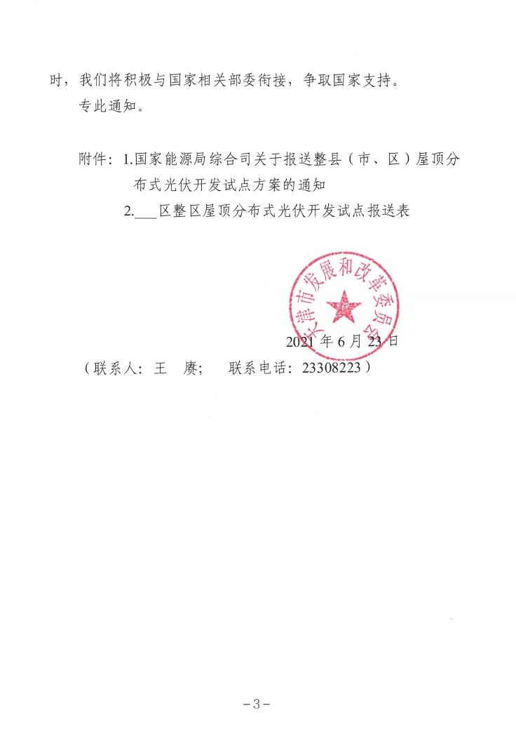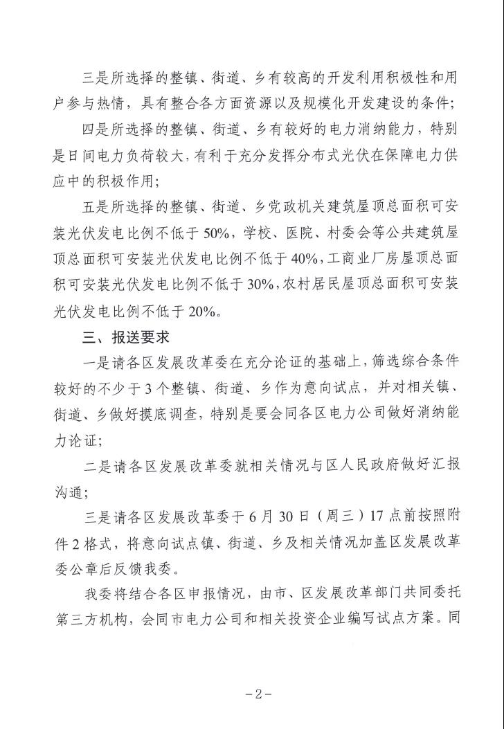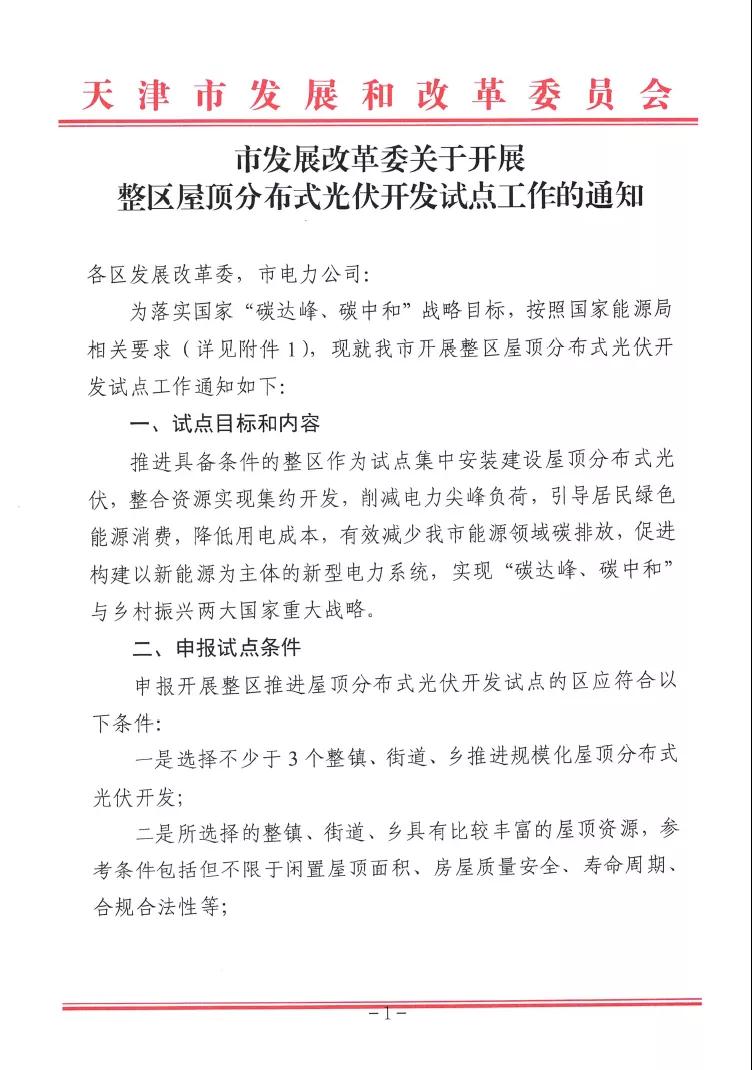 6月23日,天津市發(fā)改委下發(fā)《關于開展整區(qū)屋頂分布式光伏開發(fā)試點工作的通知》,每區(qū)選擇不少于3個試點推進規(guī);蓓敺植际焦ぷ鳌Mㄖ缦拢