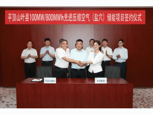 平頂山的葉縣,有著“中國巖鹽之都”的美譽(yù),現(xiàn)在,這里即將成為一座極具發(fā)展?jié)摿Φ拇笠?guī)模長時低碳儲能技術(shù)的應(yīng)用示范高地。6月30日,平頂山晟光儲能有限公司和中國機(jī)械設(shè)備工程股份有限公司(簡稱中設(shè)集團(tuán))在北京正式簽約,將在葉縣建設(shè)國際首套利用鹽穴儲氣的百兆瓦級先進(jìn)壓縮空氣儲能電站。簽約儀式現(xiàn)場壓縮空氣儲能是未來