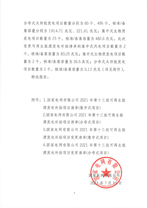 公告稱,2021年7月15日,我公司已將完成公示的2021年第十三批可再生能源發(fā)電項(xiàng)目補(bǔ)貼項(xiàng)目清單上報(bào)國(guó)家主管部門(mén),第十三批項(xiàng)目清單及后續(xù)項(xiàng)目審核進(jìn)展情況,請(qǐng)登錄新能源云平臺(tái)查詢。