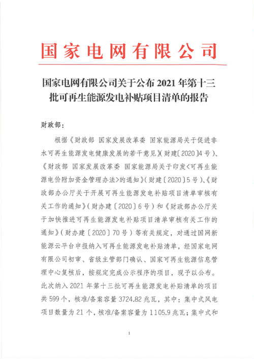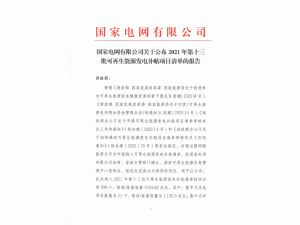 據(jù)國(guó)網(wǎng)新能源云消息:19日,國(guó)網(wǎng)新能源云發(fā)布《關(guān)于公布2021年第十三批可再生能源發(fā)電補(bǔ)貼項(xiàng)目清單的公告》。